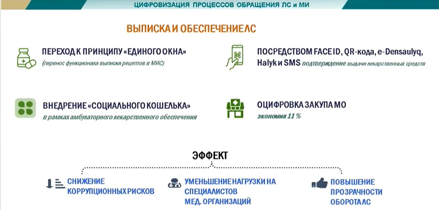 Важным элементом цифровой экосистемы становится и проект «социальный кошелёк», обеспечивающий адресную выдачу лекарств, в том числе с использованием QR-кодов. По итогам 2025 года через эту систему уже обеспечено около 85% пациентов. Полный переход на данный механизм рассматривается как одна из приоритетных задач.